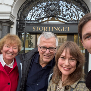 Foto: Norsk PEN. Fv: Marianne Borgen, Styremedlem i ICORN, Helge Lunde, direktør i ICORN, Ingeborg Kværne, nasjonal Fribykoordinator og Jørgen Frydnes, generalsekretær i Norsk PEN.